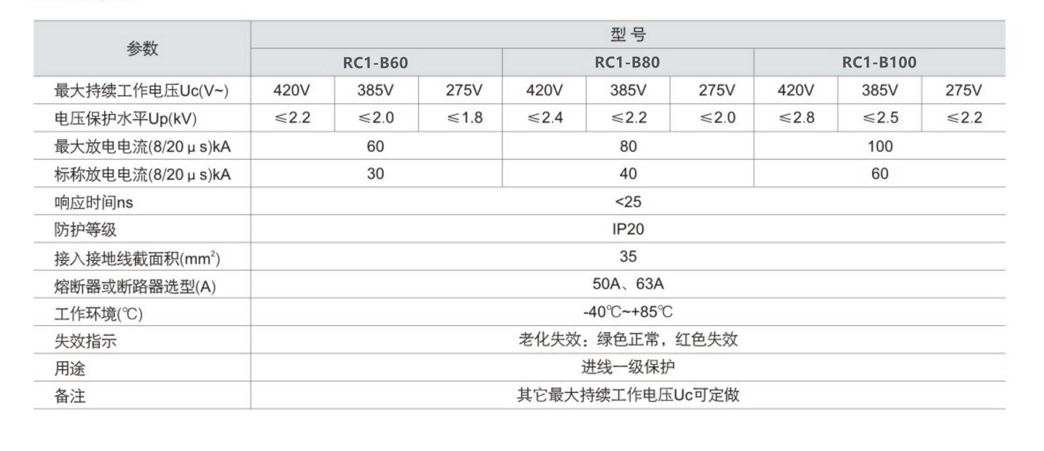 RC1-B系列電涌保護器(簡稱SPD)適用于交流50/60Hz,380V及以下的TT、IT、TN-S、TN-C-S等供電系統(tǒng),可作為LPZ1、LPZ2與LPZ3區(qū)界面處的等電位鏈接,其設(shè)計依據(jù)負荷IEC61643-1、GB18802.1,外殼設(shè)計安裝在35mm電氣導軌上,該產(chǎn)品內(nèi)置失效脫離裝置,當電涌保護器因過流過熱、擊穿失效時,失效脫離裝置能自動的將其從電網(wǎng)上脫離,同時可視告警模塊由綠色(正常)變成為紅色(故障)。